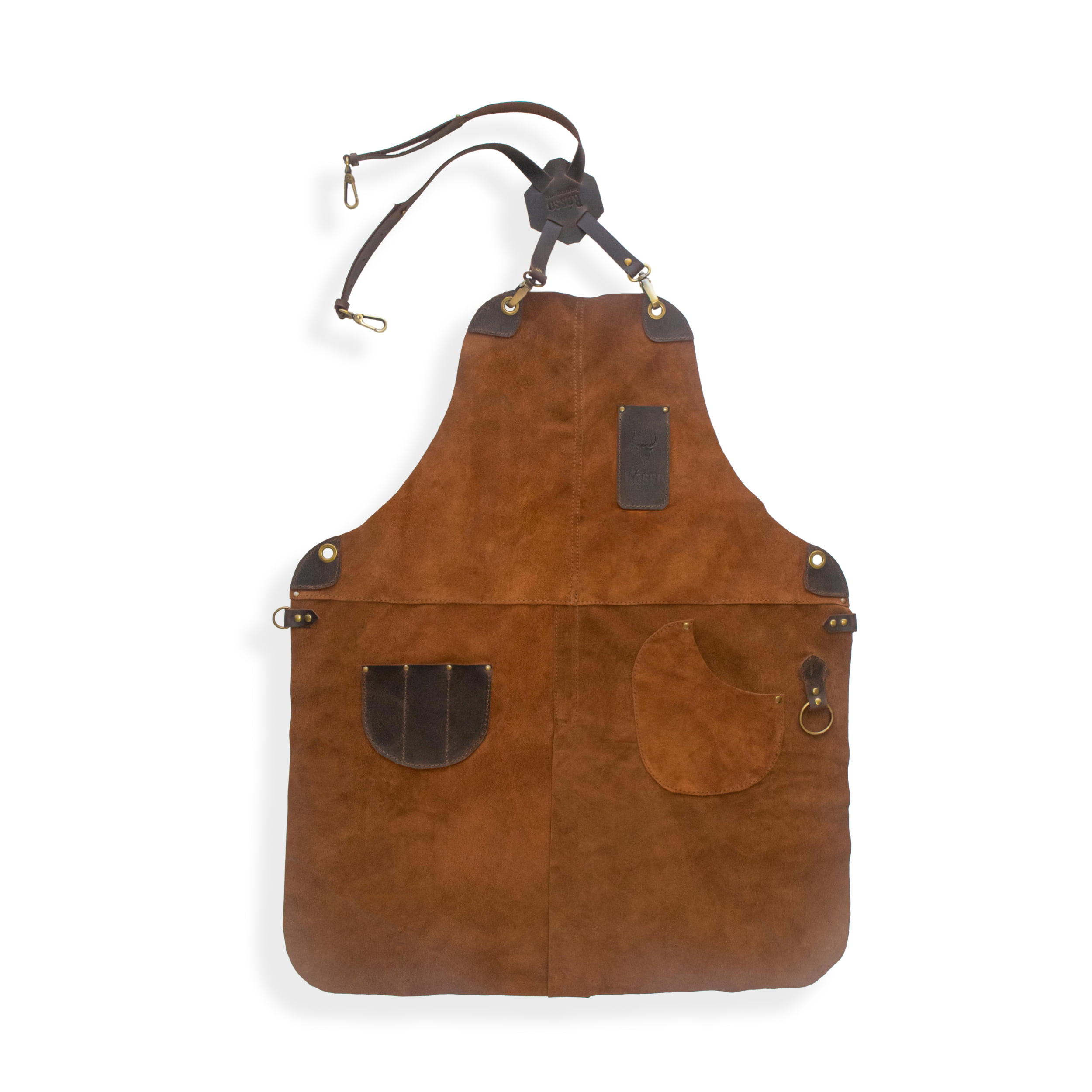 Δερμάτινη Σουέτ ποδιά που προσφέρει 3 δερμάτινες θήκες υψηλής ποιότητας για τα εργαλεία σας. Δένει με αποσπώμενες δερμάτινες χιαστή τιράντες και ζώνη μέσης.