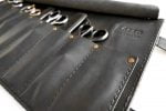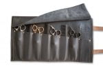 Δερμάτινο ρολό εργαλείων από premium μοσχάρι πλήρους κόκκου και επένδυση από δέρμα nappa, προσφέροντας 8 δερμάτινες θήκες για το ψαλίδι, τα ξυραφάκια και τις χτένες σας και άλλα αξεσουάρ κομμωτικής ή κουρείας. Δένει εύκολα με δύο δερμάτινους ιμάντες.