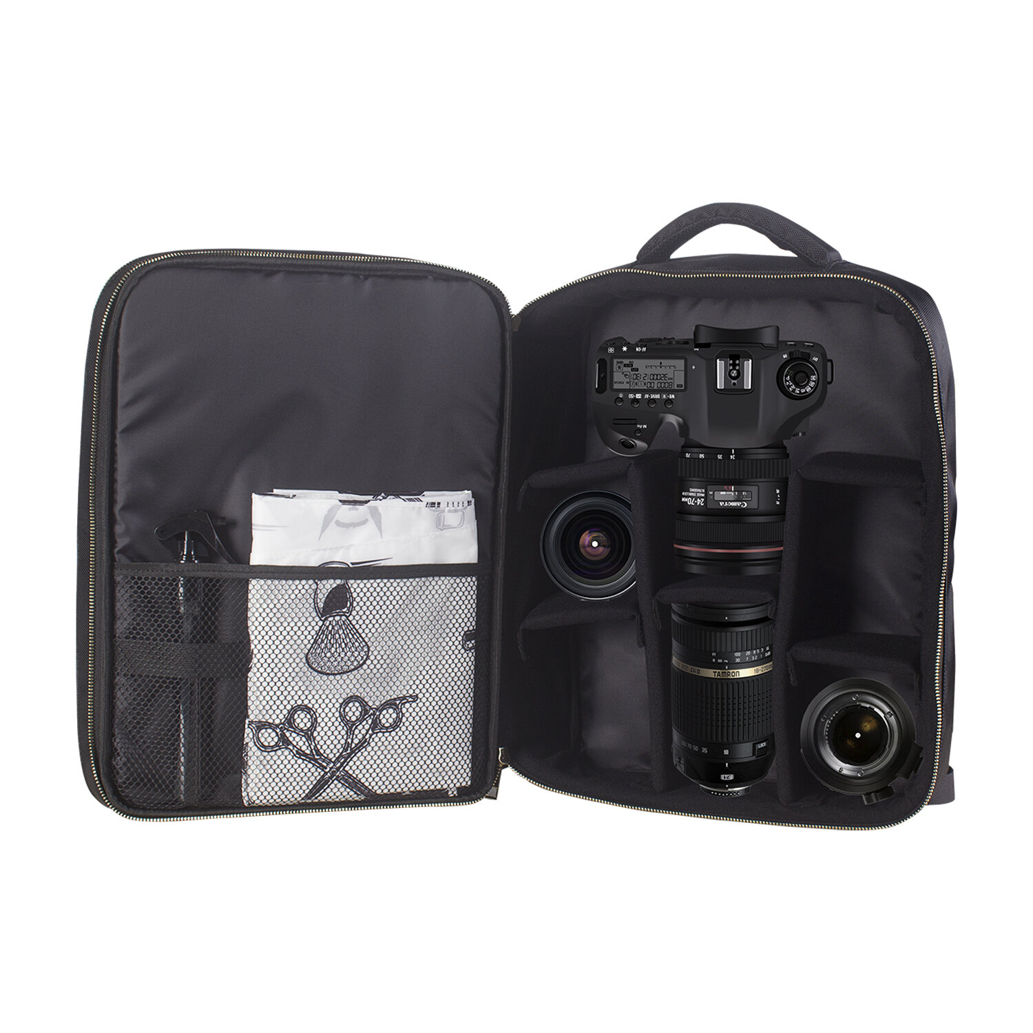 • Εξοπλισμένο με προσαρμοσμένες εσωτερικές θήκες για κάμερα και φακό
